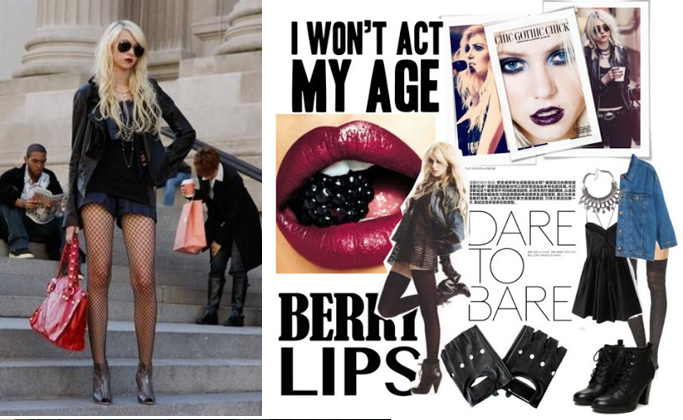 Jenny Humphry is a young edgy designer that has taken everything she had seen on her upper-east-side comrades to a subversive level. Like Blair, she too has had a transformation over the years. She was introduced as a soft, innocent young girl who wants to fit in with her Constance Billard mates. When she realized they were all just insecure Blair minions and had no originality to them, she branched off and risked social-death to learn who she is, and freely be that. Her rebellious faze saw her denounce all things upper east side and girly, and gravitate to darker pieces, darker makeup, and shorter hemlines. We also see these subtle transformations through the way she changes up her accessories with or sewn on to her uniform. To put it simply, the darker her make-up, the darker her character becomes. When she is is a senior and the reigning Queen of the school, the attitude is more assertive, as shown above. She knows what trends are popular and only implements them on her clothes if she can darken up anything soft and frilly.