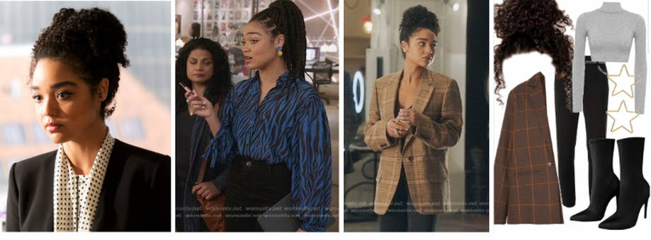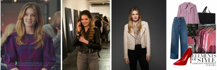 All characters in The Bold Type are dynamic, but Jane goes through a lot of growth and hardship in her career at Scarlet on the show. Nevertheless, she turns it out. If she were a battle warrior, her armor would be the most elaborate, detailed, multifaceted textile to exist. All this, and she is not in the fashion department at scarlet. She’s a writer! It just proves that you don’t have to be an expert in the industry to dress well, but it helps that her bestie Sutton is. We see her in many different black sheer tops, and she knows how to wear leather in a way that is feminine but portrays how untouchable and headstrong she is in her personal life and her writing career. She has a feminine personality with a pinch of hardness. Therefore, She sprinkles these rough textures in her girly silhouettes to truly create a character with her looks.