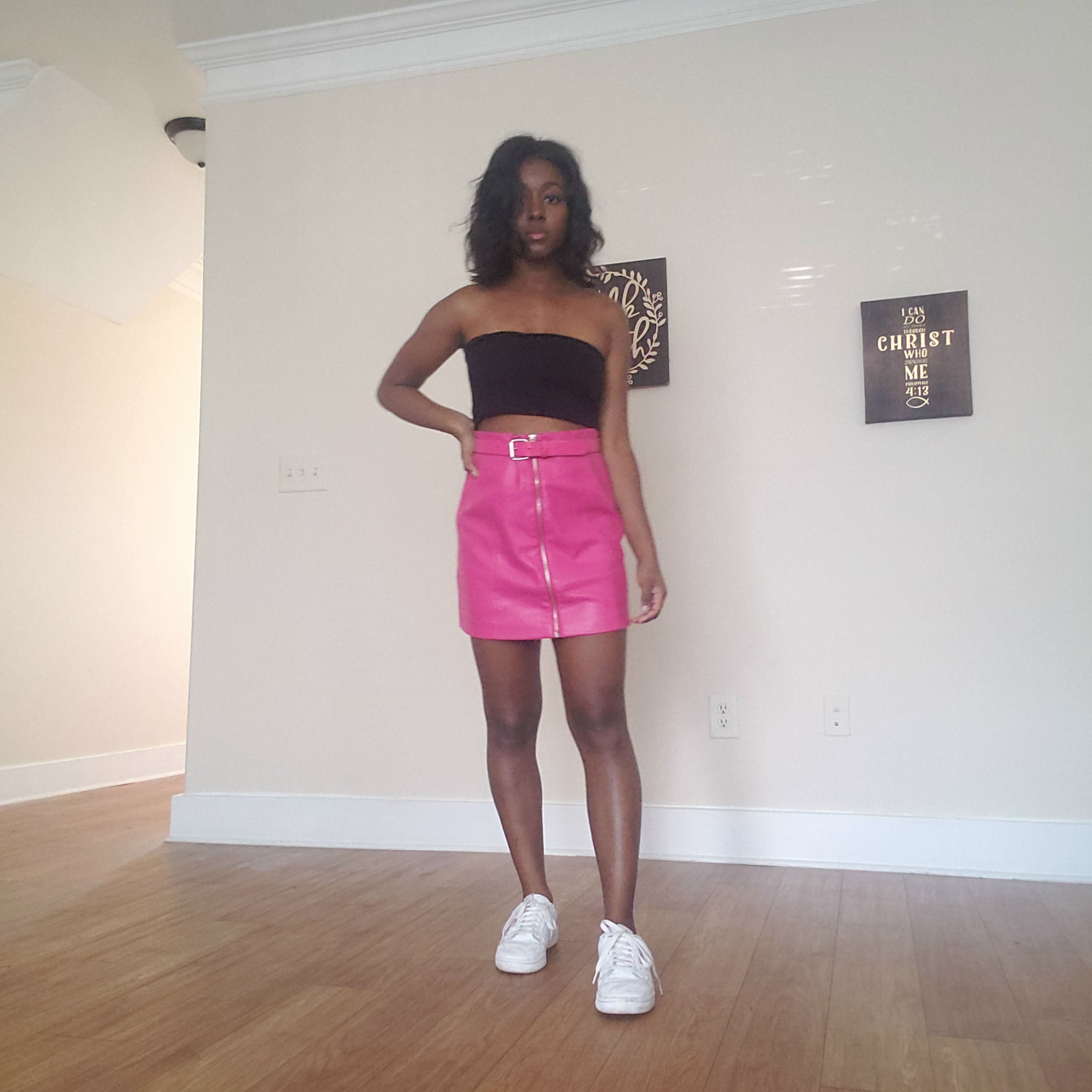 I used to strongly believe that summer fashion was boring. Obviously, I don’t believe that anymore, because I somehow came up with this outfit. The way to stay cool and still feel covered up enough is for your tighter skirts to be a little bit longer. You can play with the silhouette by making it high-waisted and pairing it with a tube top. I did this here, and the skirt was still mid-thigh. Flat shoes are your best bet for staying comfy and not worrying about your skirt riding up. With simpler outfits like this, try making your shoes one neutral, and your top a completely different color.